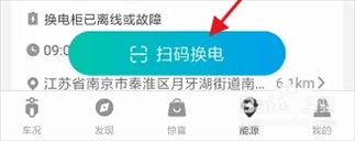 3、进入“能源”页面,找到上方的“换电”选项,点击扫码换电进入;