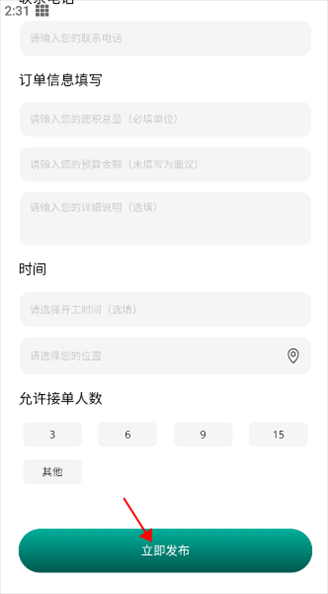 3、填写具体的需求和联系方式,点击发布,等待保洁师傅接单即可。
