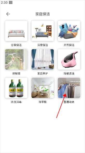 2、家庭保洁服务有多个选项,选择适合的服务类型,点击进入详细页面。