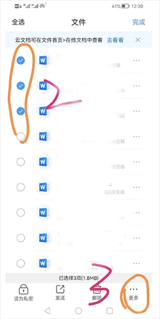 2、找到需要导出的文件,选中后点击“更多”进行操作。