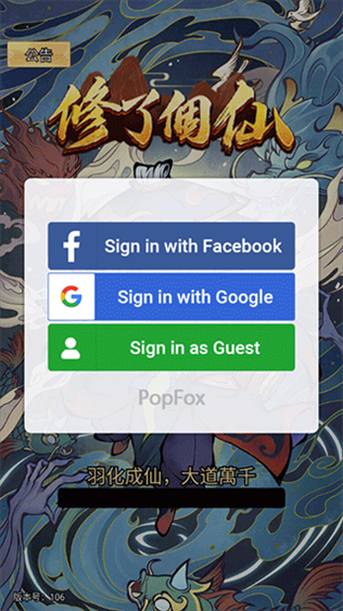 1、下载并安装游戏后,进入游戏,选择第三个选项登录。