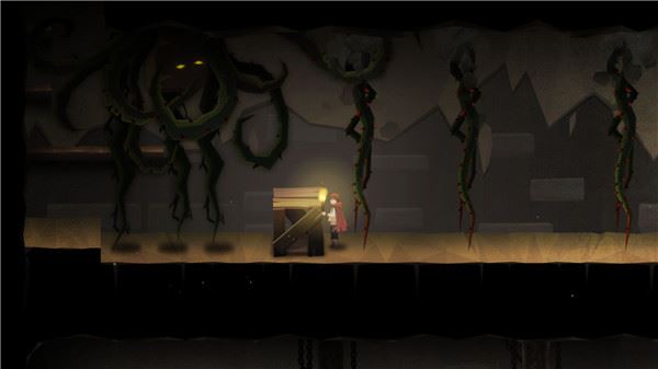 作为一款动作解谜游戏,场景中不乏各种危险的机关,稍有不慎就可能被钉子刺死、被蝙蝠撞死,或是被石块砸死。虽然死亡不可避免,但无需担心,你会在附近找到存档点——点燃附近的火把即可存档。在某些地方,玩家还能找到宝石、宝箱或前人的遗物,还会有一些小型解谜游戏,帮助玩家在冒险中前进。