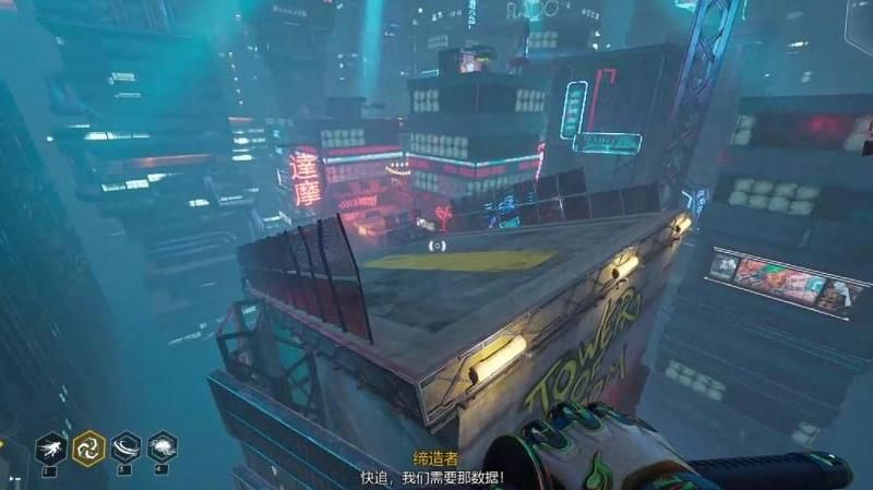 开局从空中跳下时需立刻锁定下方敌人完成首次击杀,随后迅速跳向前方平台缺口处。利用游戏核心移动机制——墙面奔跑,在平坦墙面上加速冲刺至对面屋顶,借助红色广告牌作为跳板继续前进。跑酷过程中需熟练掌握滑铲操作:在移动中按下蹲键(默认Ctrl)可通过红色斜坡获得加速,利用惯性跃至右侧墙体再转至左侧平台。风扇区域是首个难点,靠近时需精准触发冲刺技能(Shift键)瞬间穿越叶片,后续空中冲刺可延长跳跃距离,按预定路线到达高层结构。