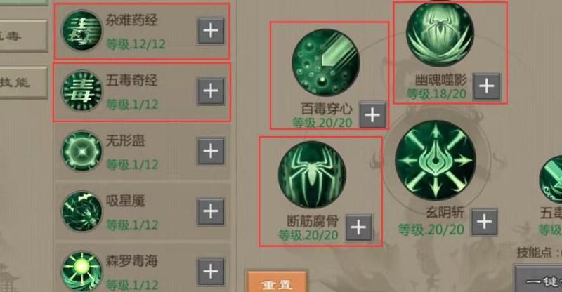 木系五毒的毒素特效注重诡谲氛围营造,百毒穿心释放的五颗旋转幽绿色毒星移动时残留荧光路径,命中后产生腐蚀性烟雾扩散;刀毒幽魂噬影的毒液溅射表现为刀刃挥动泼洒荧光绿液体粒子,地面毒渍持续散发扭曲空气的热浪特效,其召唤物呈现半透明幽冥质感,配合环境光遮蔽技术使毒雾区域产生光线衰减效果,深绿与紫黑的视觉符号组合构建出阴郁危险的战场压迫感。